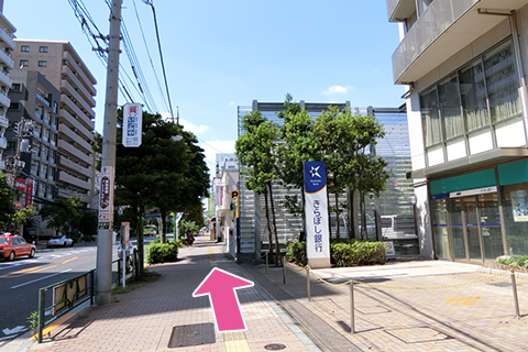 右手に見える「きらぼし銀行」を通過して下さい。
