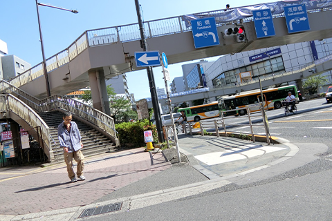 階段またはエレベーターを下りると「船橋屋」という、くずもち屋さんが見えます。その船橋屋を左手にして、明治通り沿いをまっすぐ西大島方向に進みます。